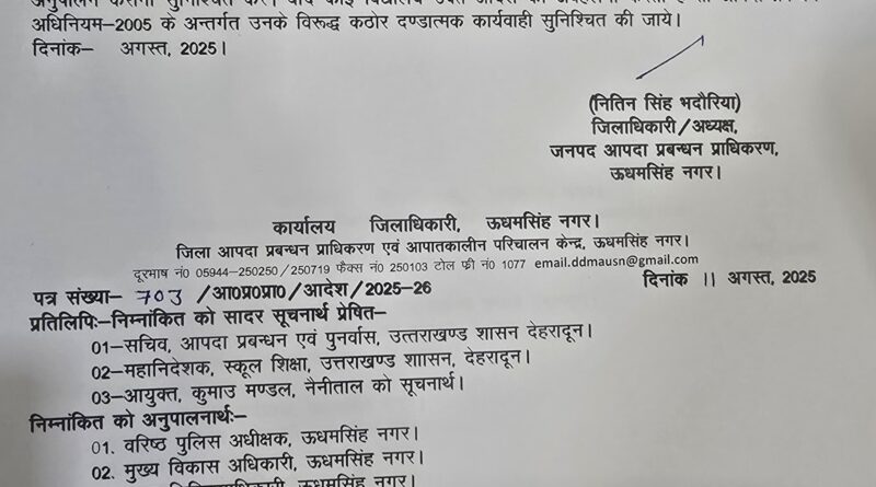 ब्रेकिंग : उधमसिंह नगर में मंगलवार को बंद रहेंगे सभी स्कूल, आदेश जारी